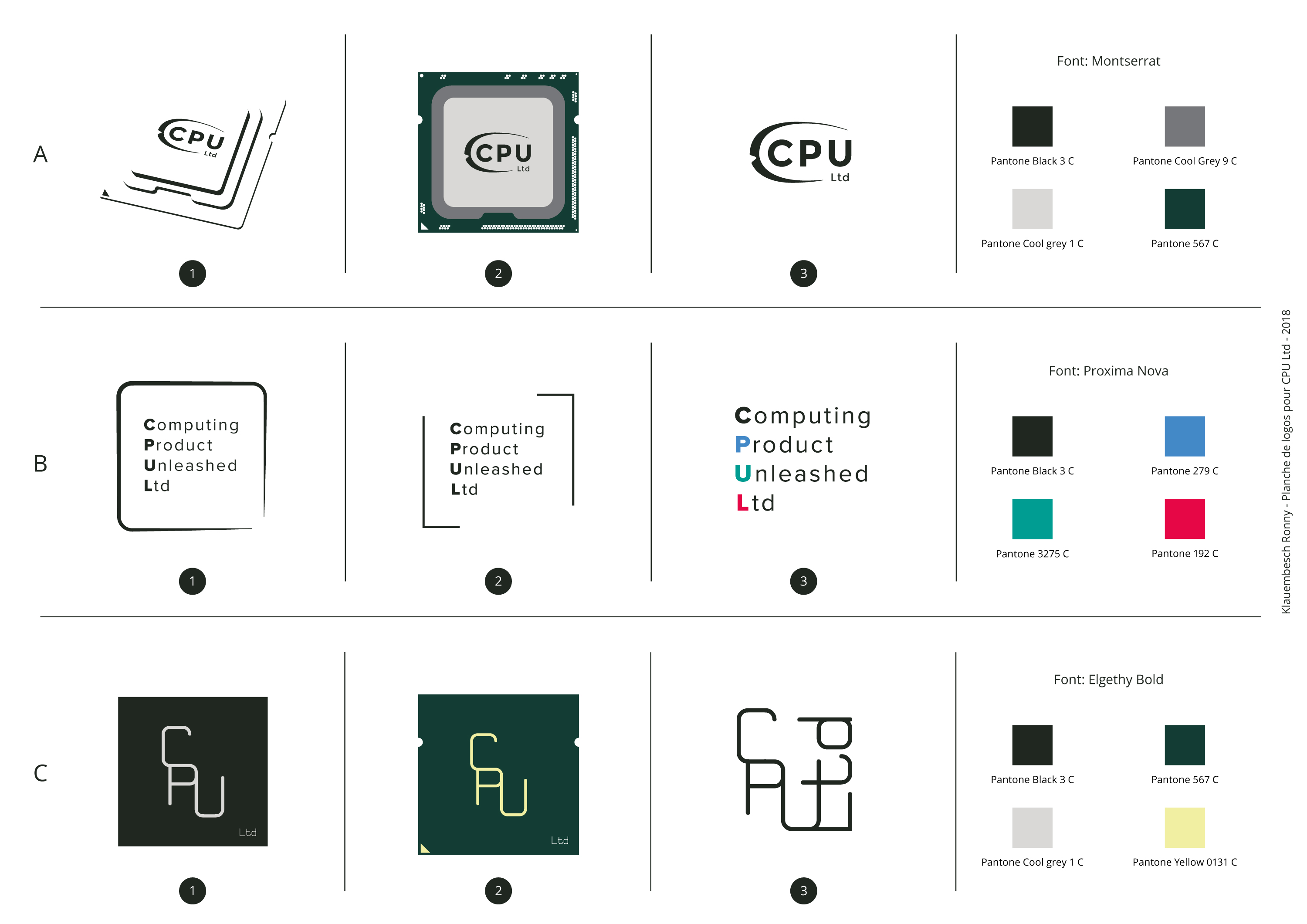 Création d’une identité visuelle pour un magasin fictif de matériel informatique du nom de "CPU".
